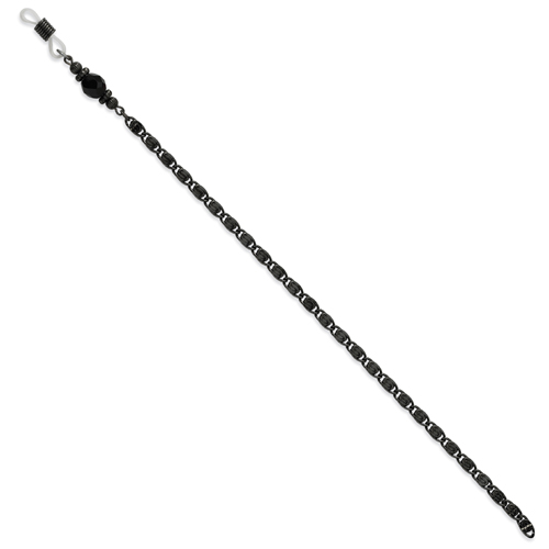 Black Crystal Bead Eyeglass Holder Black-plated 30" Chain