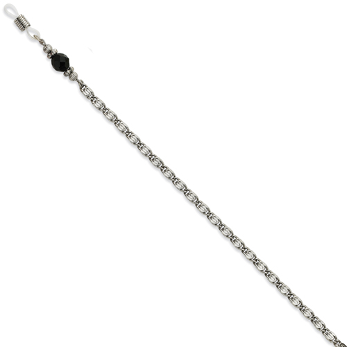 Black Crystal Bead Eyeglass Holder Silver-Tone 30" Chain