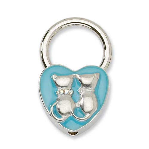 Silver-tone Cats With Crystals Aqua Enamel Key Fob