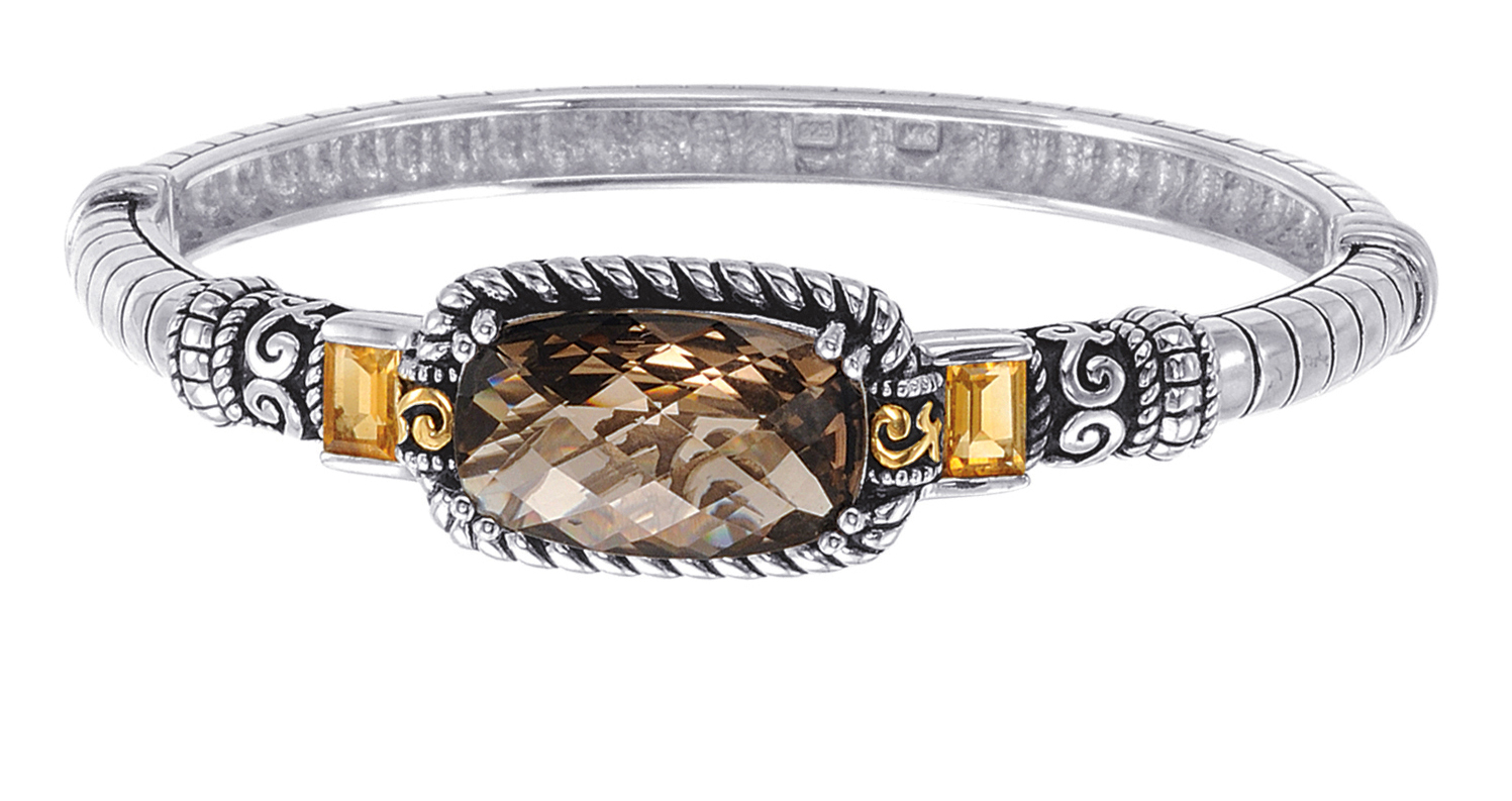 Alesandro Menegati 14K Accented Sterling Silver Bangle with Smoky Quartz and Citrines