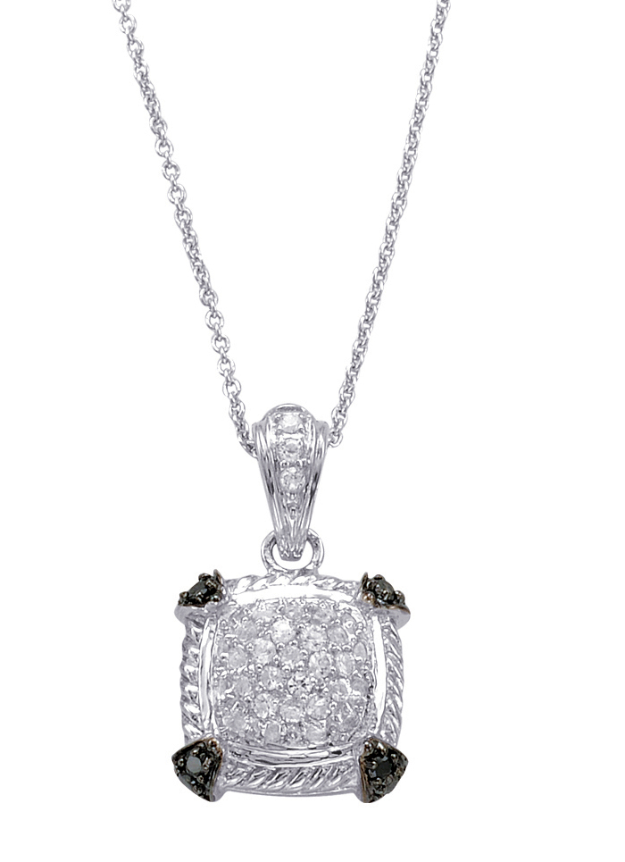 Sterling Silver Black Diamonds and White Topaz Square Necklace