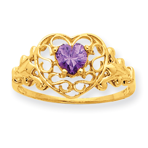 10k Polished Geniune Amethyst Birthstone Ring