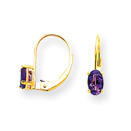 14k 6x4mm Oval Amethyst leverback earring