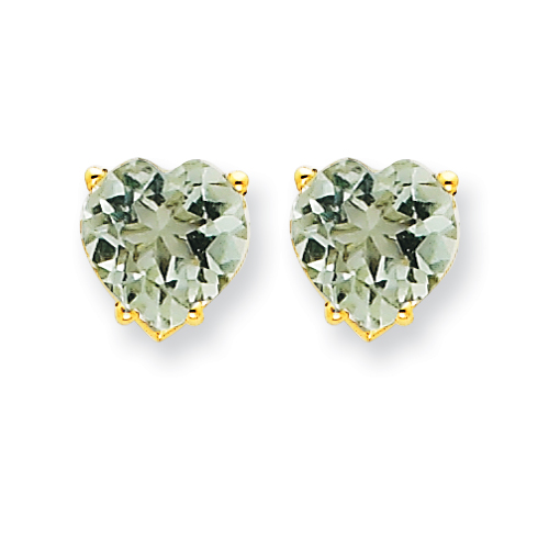 14k 7mm Heart Green Amethyst Earring