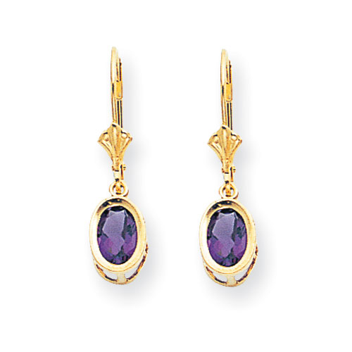 14k 7x5mm Oval Amethyst leverback earring