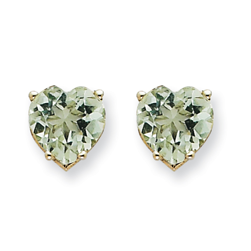14kw 7mm Heart Green Amethyst Earring