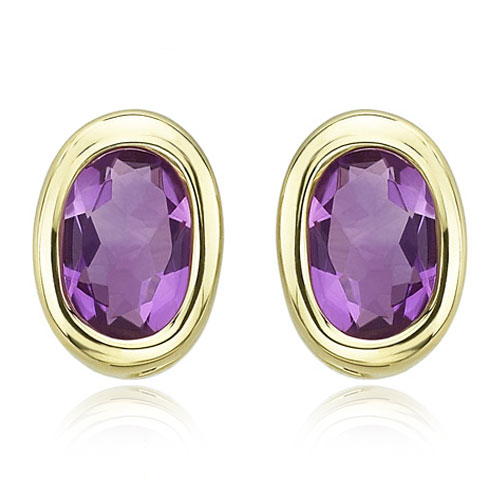 Add stunning, yet subtle style to any ensemble with these beautiful gemstone earrings. Oval Amethyst stones are bezel set in Yellow Gold for a unique and colorful look.