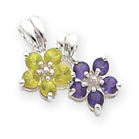 Sterling Silver Amethyst & Peridot Floral Pendant