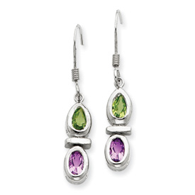 Sterling Silver Peridot & Amethyst Dangle Earrings