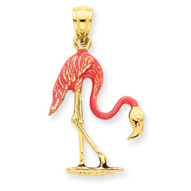 14K Enameled 3-Dimensional Pink Flamingo Pendant