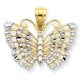 14K Gold & Rhodium Diamond-cut Butterfly Pendant