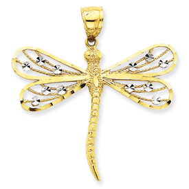 Picture of 14K Gold & Rodium Diamond Cut Filigree Dragonfly Pendant
