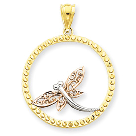 14K Two-Tone Gold & Rhodium Dragonfly Pendant