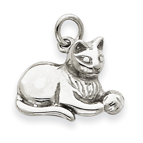 Picture of 14k White Gold Diamond-cut Satin Open-Backed Cat Charm