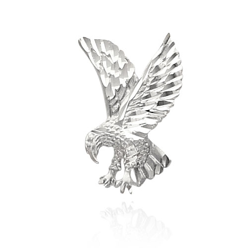 14K White Gold Medium Diamond-Cut Eagle Pendant