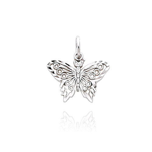 14K White Gold Small Diamond-Cut Butterfly Charm