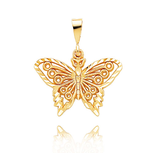 14K Yellow Gold Diamond-Cut Butterfly Pendant