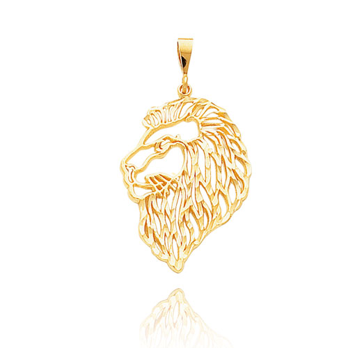 14K Yellow Gold Filigree Lion Head Pendant