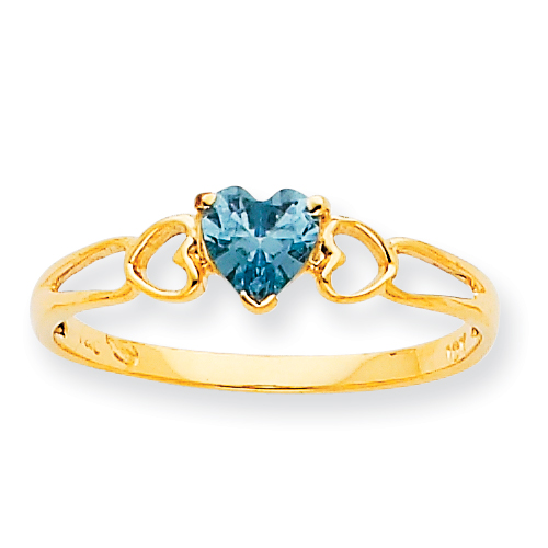 10k Polished Geniune Aquamarine Birthstone Ring
