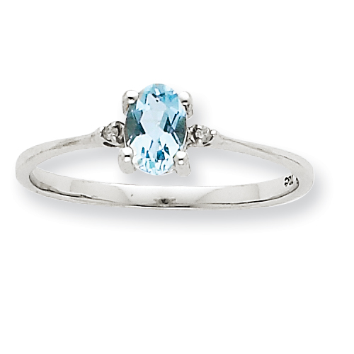 10k White Gold Polished Geniune Diamond & Aquamarine Birthstone Ring