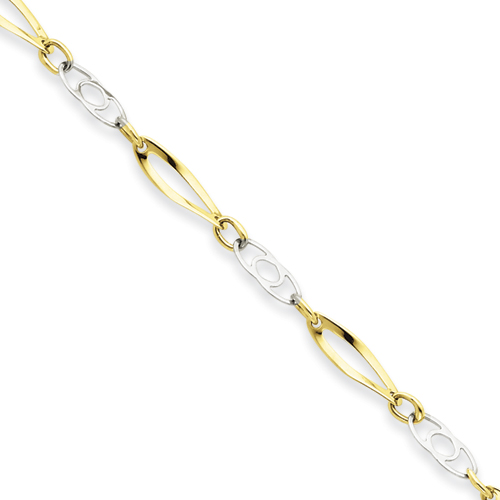 14k Two-Tone 7in Polished Fancy Link Bracelet