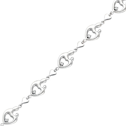 14K White Gold Mother & Child With Hearts & .18ct Diamond Bracelet