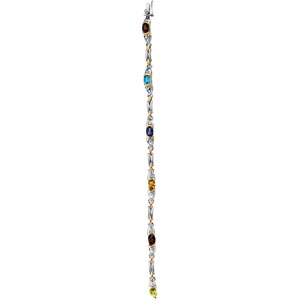 14K White Yellow Gold 06.00x04.00 Tw Two Tone Genuine Amethyst Citrine Mozambique Rhodolite Garnet Peridot Swiss Blue Topaz & Diamond Bracelet