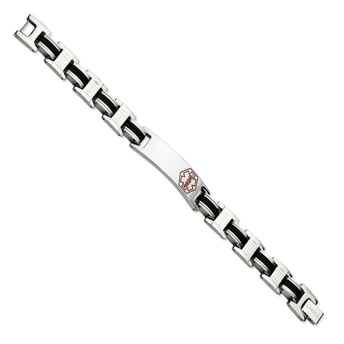 Stainless Steel Black Rubber Red Enamel 8in Medical Bracelet