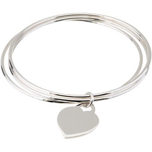 Sterling Silver 08.00 Inch Triple Bangle Bracelet With A Heart Dangle
