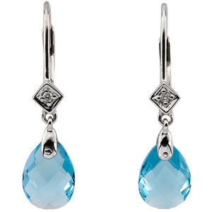 14K White Gold Pair 10x7 Genuine Swiss Blue Topaz And Diamond Earring