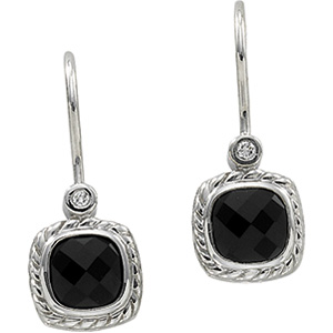 14K White Gold Pair Genuine Onyx And Diamond Earring