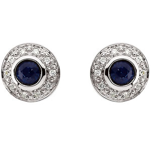 14K White Gold Pair Genuine Sapphire And Diamond Earring