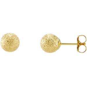 14K Yellow Gold Pair Ball Earring With Star Dust Finish And Backs