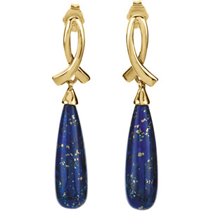 14K Yellow Gold Pair Genuine Lapis Earrings