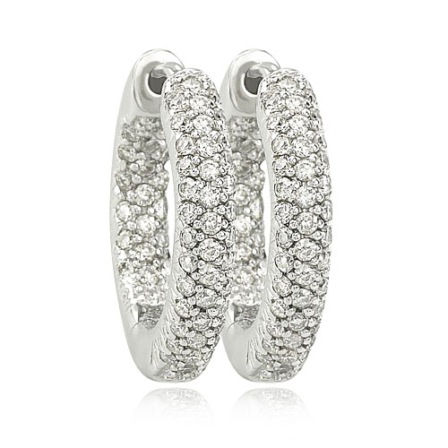 Add sparkle to any ensemble with these diamond hoop earrings. White Gold polished hoops feature shiny, round Diamonds set at the front and inside of this beautiful pair for extreme shine. Also available in Yellow Gold.