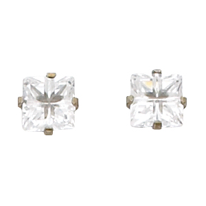 Nickel Pair Inverness Palladium Plated Square Faceted Cubic Zirconia Earring