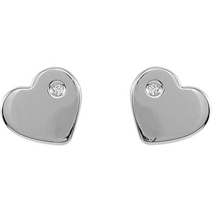 Sterling Silver Pair Diamond Heart Earrings
