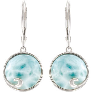 Picture of Sterling Silver Pair Genuine Larimar Earrings