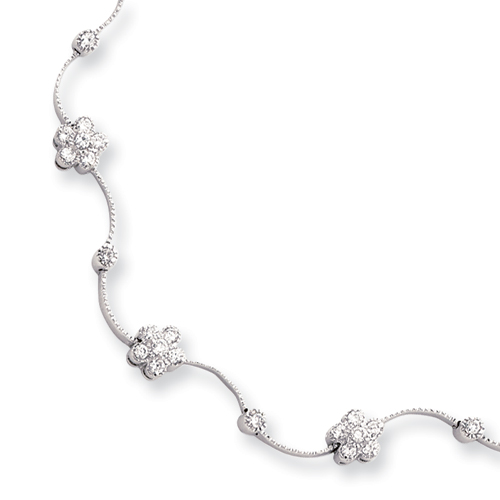 16in Rhodium-plated CZ Flower Wave Necklace chain
