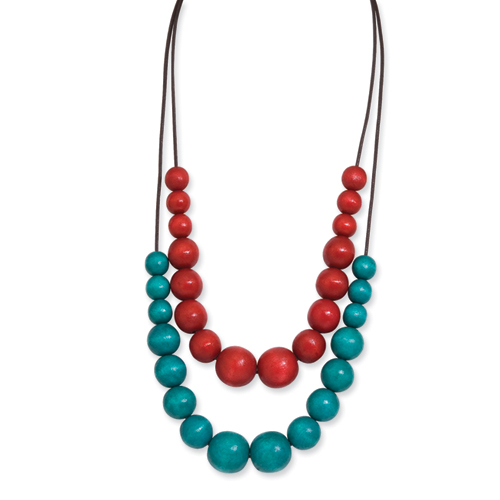 Silver-tone Red & Teal Hamba Wood Brown Wax Cord Necklace