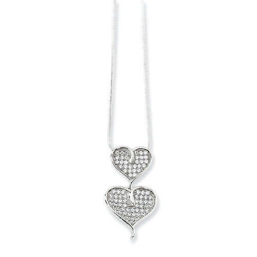 Sterling Silver & CZ Polished Double Heart Necklace chain