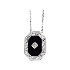 Sterling Silver With 18 Inch Chain Genuine Onyx And Cubic Zirconia Necklace