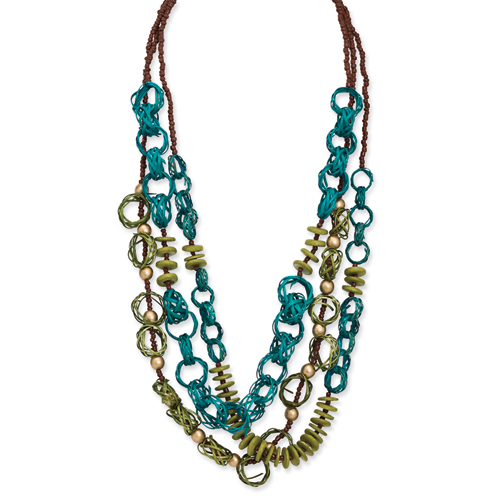 White Wood Aster, Coconut, Wicker Rings & Acrylic Bead Necklace ring