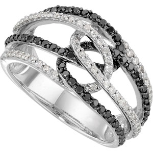 14K Gold & White Diamond Ring With Black Rhodium Plating