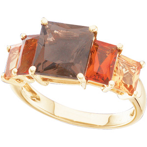 14K Yellow Gold 5x4 6x4 8x8 Genuine Madeira Citrine And Smoky Quartz Ring