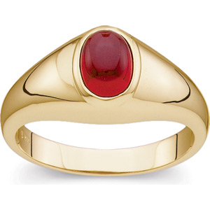14K Yellow Gold Gents Cabochon Genuine Mozambique Garnet Ring
