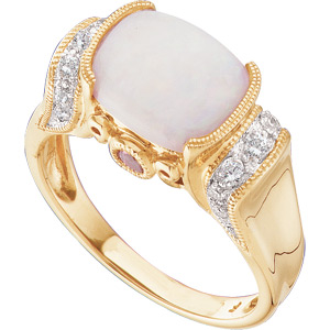 14K Yellow Gold Genuine Opal Pink Tourmaline And Diamond Ring
