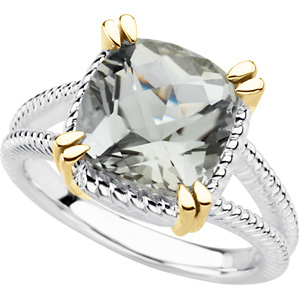 Sterling Silver & 14k Yellow Gold Genuine Checkerboard Green Quartz Ring