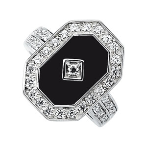 Sterling Silver Genuine Onyx And Cubic Zirconia Ring