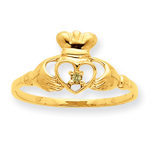 14K Gold CZ August Birthstone Claddagh Heart Ring